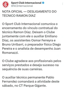 El Inter venía de atravesar una serie de resultados irregulares en el Brasileirao y, pese a la expectativa generada por la llegada de Díaz, el equipo no consiguió sostener un rendimiento competitivo que lo acercara a los objetivos previstos al inicio de la temporada. Las últimas semanas habían fortalecido los rumores de una inminente salida, que finalmente se concretó con el comunicado oficial.